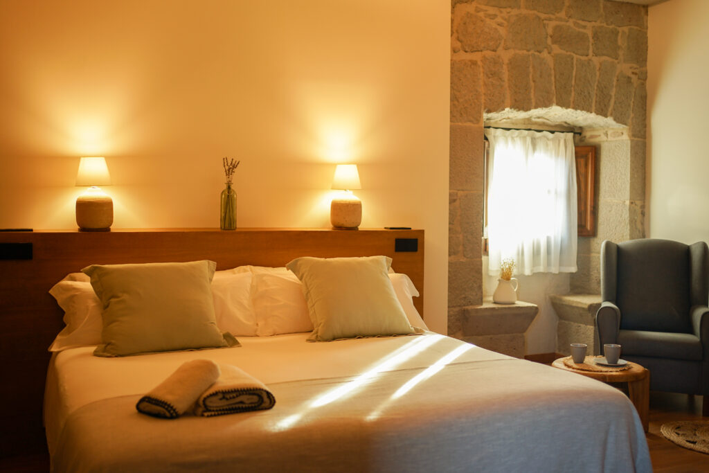 Cada habitació manté un fil amb la seva història, però es viu amb la senzillesa, l’ordre i l’harmonia que defineixen La Serra: espais tranquils, naturals i pensats perquè el descans sigui profund, serè i coherent amb la casa.