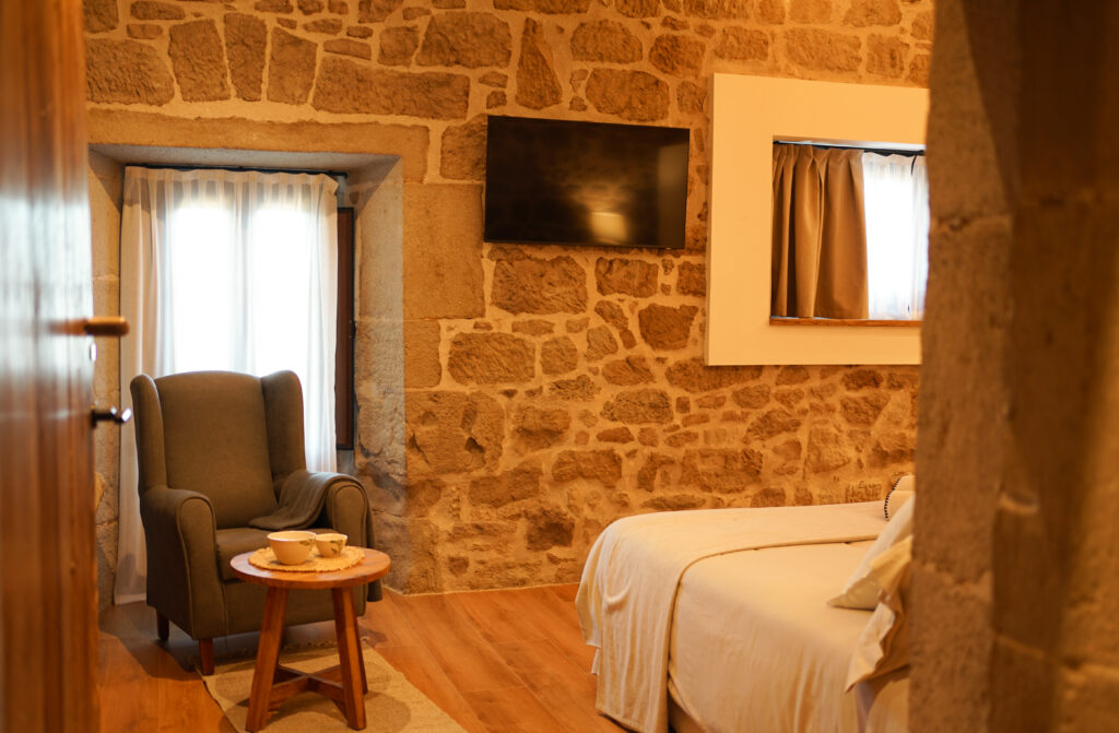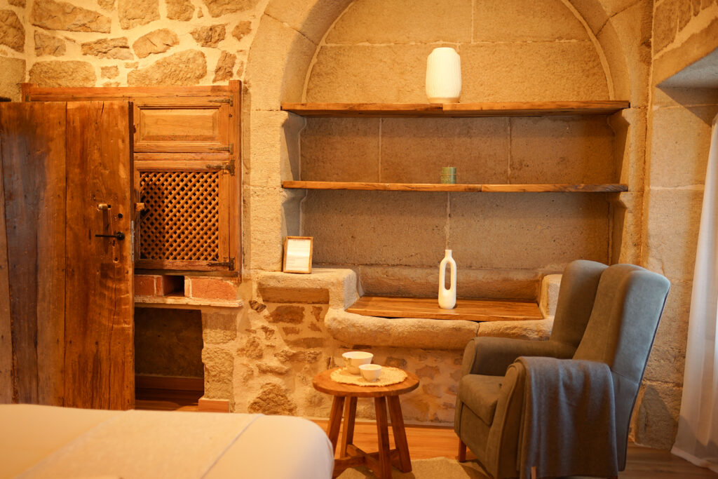 Les habitacions de La Serra Sport & Wellness neixen d’un espai que ja existia, amb una funció concreta dins la vida quotidiana de la masia. Cada una conserva detalls originals —com antics fogons, festejadors o la torreta de vigilància— que avui conviuen amb la calma i el confort cuidat i d’alt nivell.